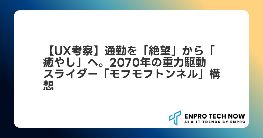 【UX考察】通勤を「絶望」から「癒やし」へ。2070年の重力駆動スライダー「モフモフトンネル」構想